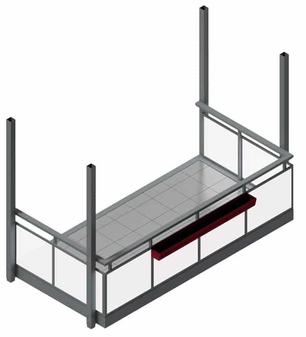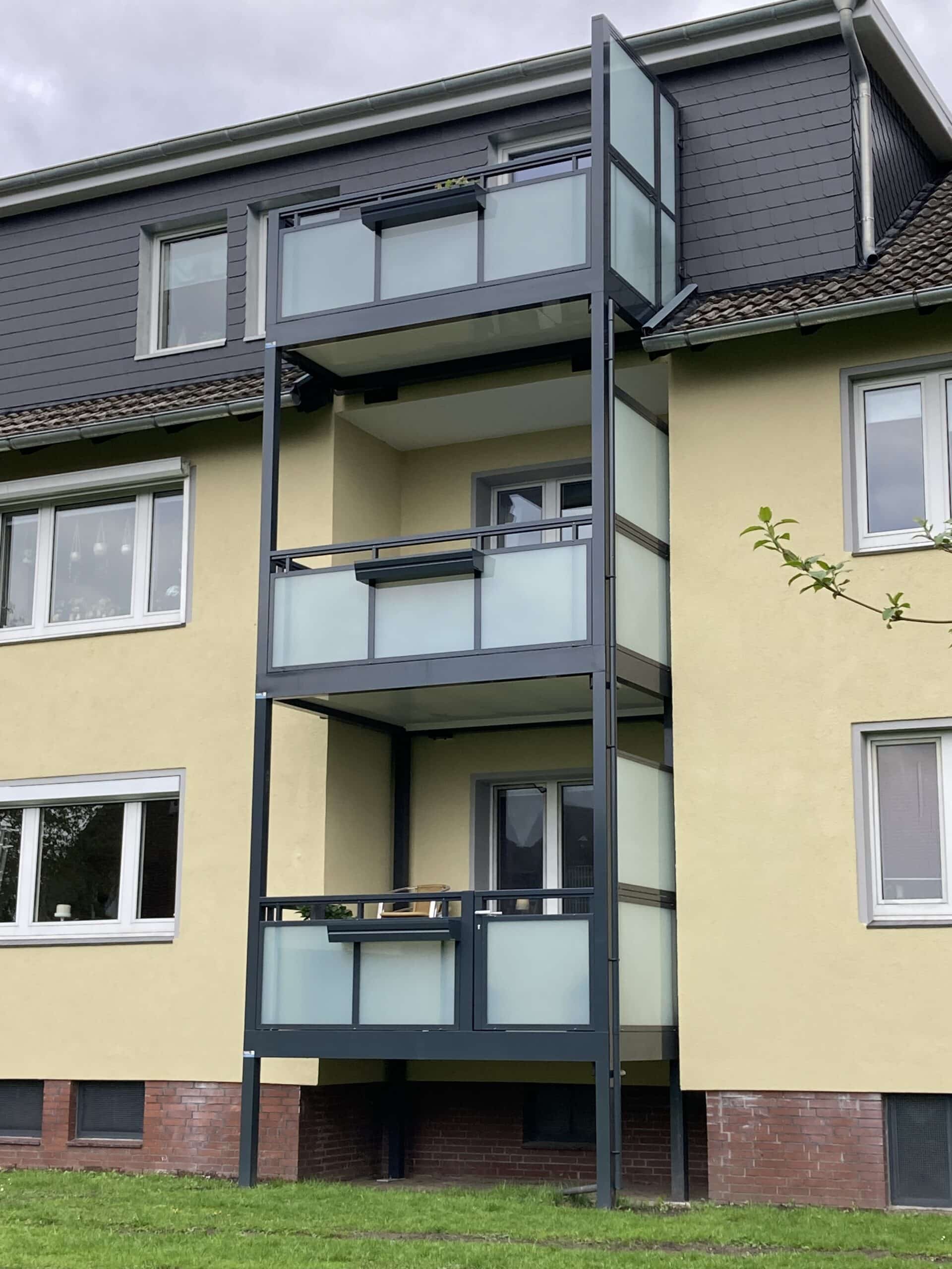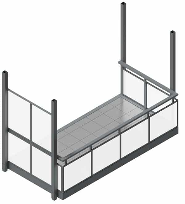Bei bestehenden Betonloggien mit solider Bausubstanz kann die Nutzfläche über eine Aluminiumkonstruktion erweitert werden. Dafür werden an den Loggiaschaftwänden Haltewinkel befestigt, die den Aluminiumrahmen über oder vor der Betonloggiaplatte aufnehmen. Zusätzlich wird die Erweiterung stirnseitig abgestützt.